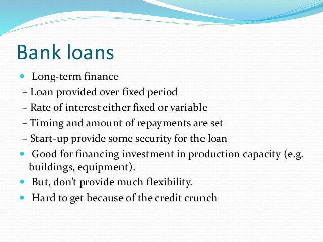 Bank loans and overdrafts the first port of call that most people think about when trying to obtain finance is their own bank. In fact the use of credit cards is the most common source of finance amongst small businesses. An entrepreneur can source for fund through.